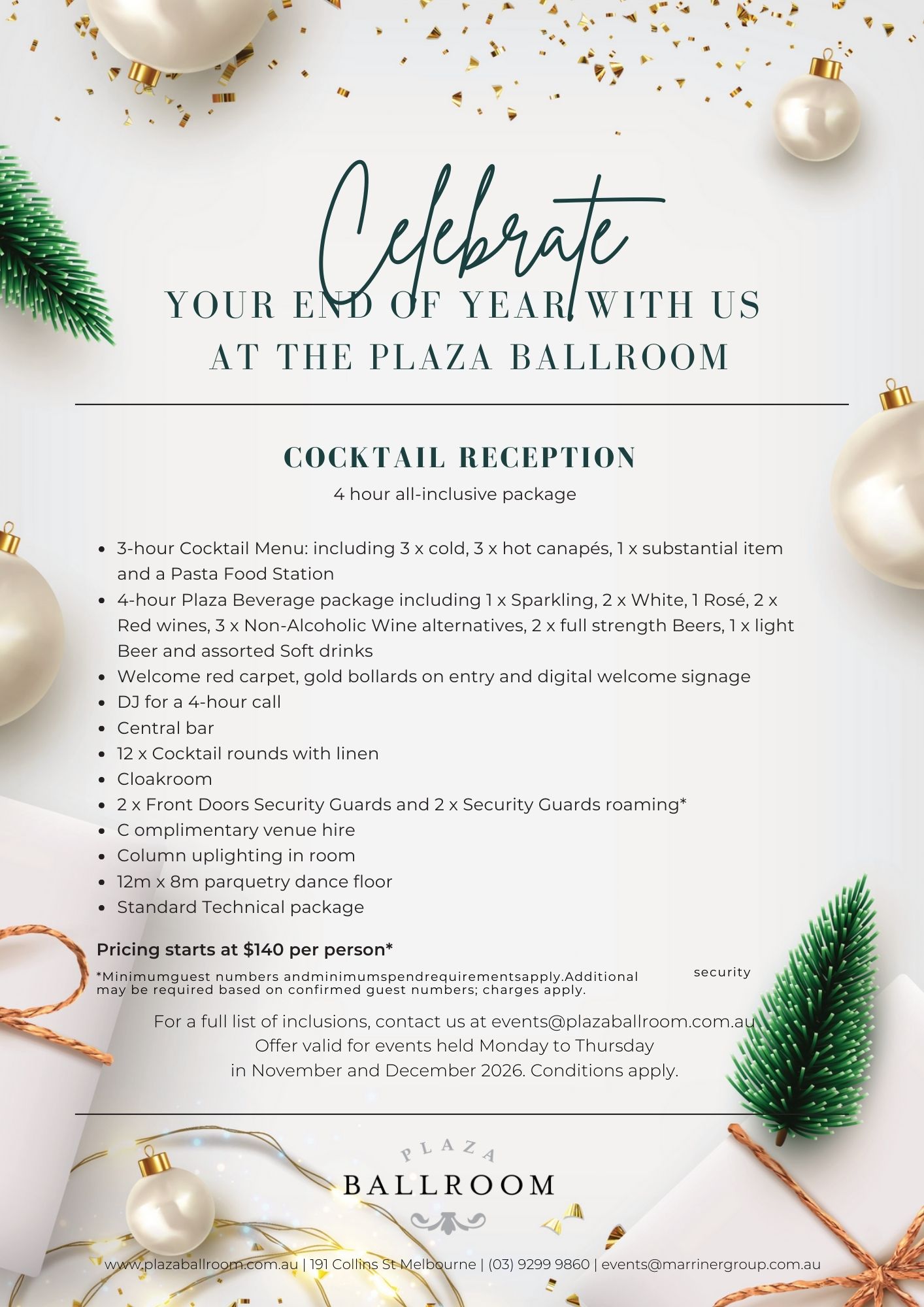For a full list of inclusions contact us at events@plazaballroom.com.au